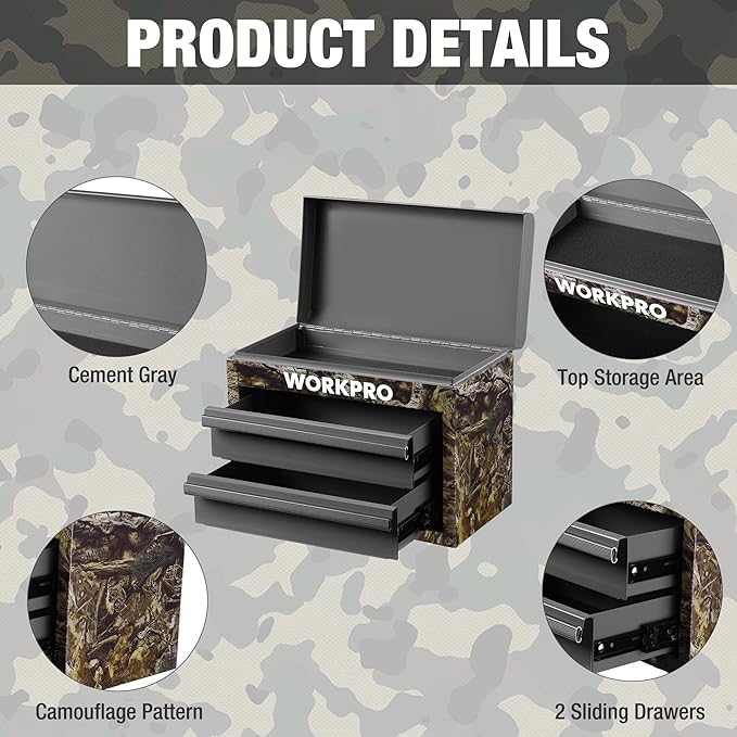 - Stylish & Sturdy Construction: The mini tool chest features a camouflage UV heat transfer print, and the top and drawers are powder-coated gray for a military-style aesthetic. The screw-reinforced bottom and high-quality steel ensure excellent stability and load-bearing capacity, combining aesthetics with durability