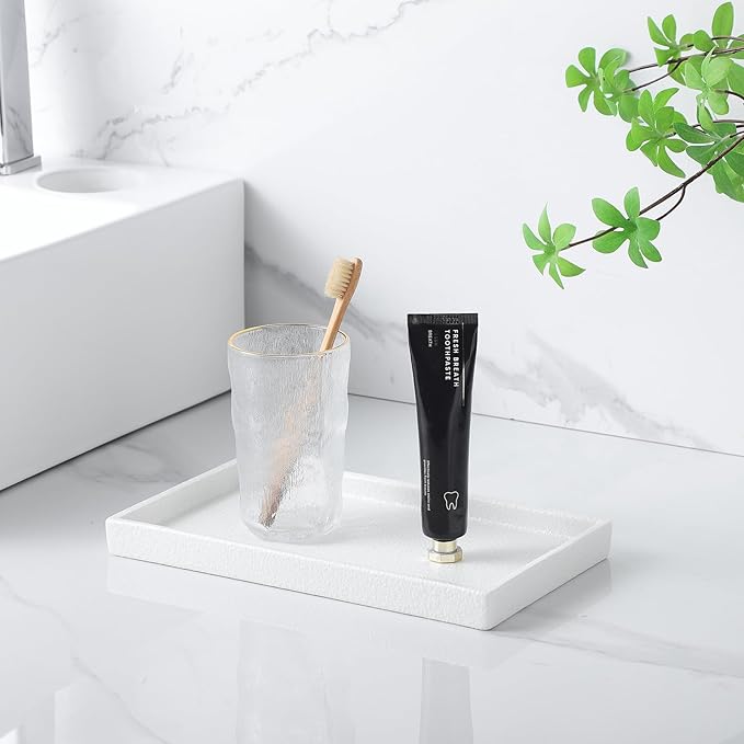 - 【Versatile】The white bathroom tray enhances the beauty of any space - use it as a bathroom vanity tray to display luxurious perfumes, as a kitchen countertop organizer, or as a minimalist jewelry tray on your room's dresser. Its unique shape and matte finish blend perfectly with modern, farmhouse, or industrial decor.
