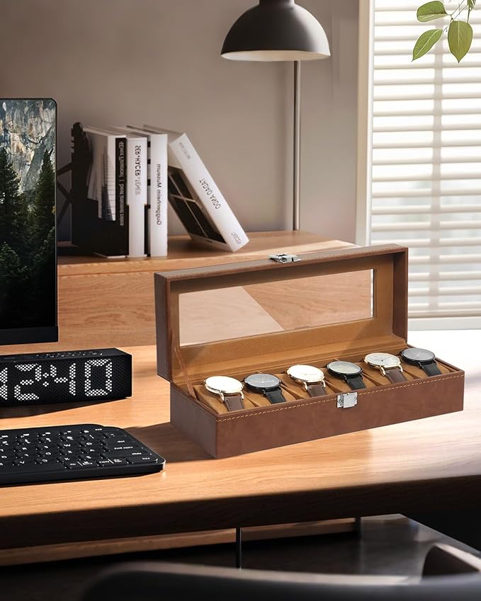 - Holds 6 Watches: The watch organizer neatly stores 6 watches without taking up too much space.