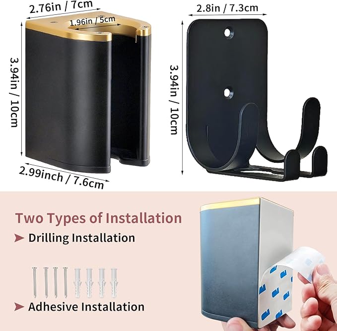 - 【Premium Black & Gold Finish — Elegant Touch to Any Space】Featuring a matte black curling iron holder with gold trim, this Dyson Airwrap wall mount holder combines luxury and practicality. The aluminum body is rust-proof and heat-resistant, perfect for your bathroom vanity, curling iron holder for vanity, or salon setup. A statement piece that turns organization into décor