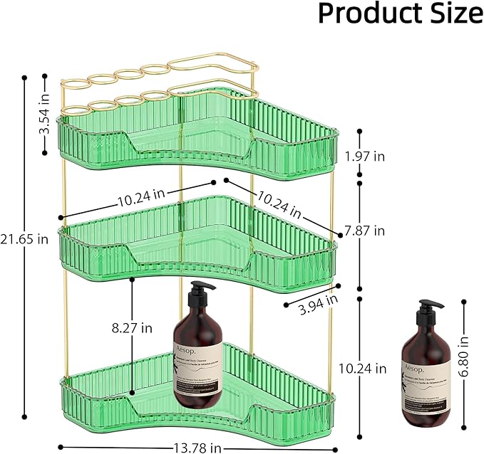 - 【90° Corner Bathroom Counter Organizer】The 90° quarter-circle design maximizes the unused space that snugly fits bathroom/vanity corners. Multi-layer structure adds 100% vertical storage while occupying minimal counter space.