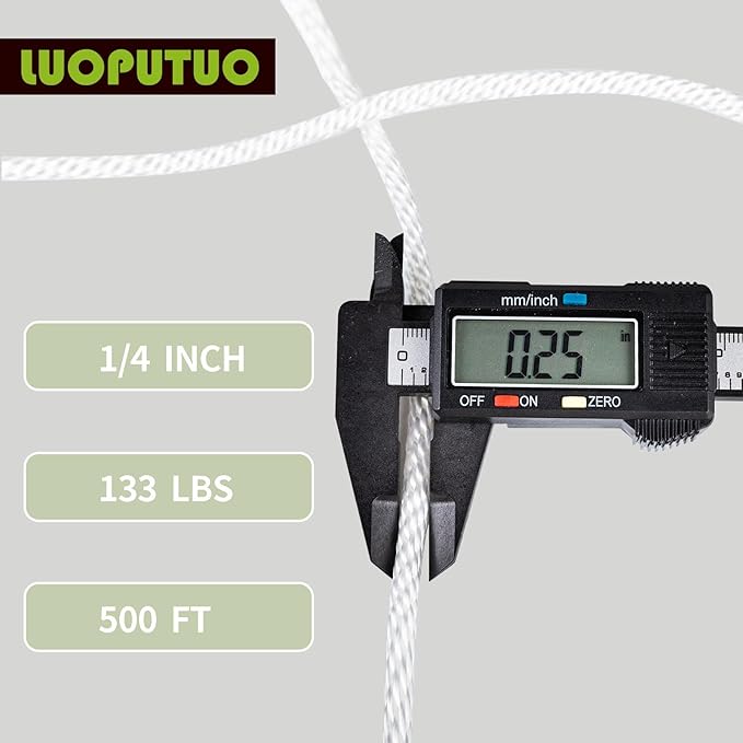 - The nylon rope is made of high quality materia meanwhile features sturdy construction and tightly woven strands that can easily tackle some of the most back-breaking loads, It is one of the strongest ropes on the market. 1/4" diameter nylon rope, 500' long rope, meet your daily needs