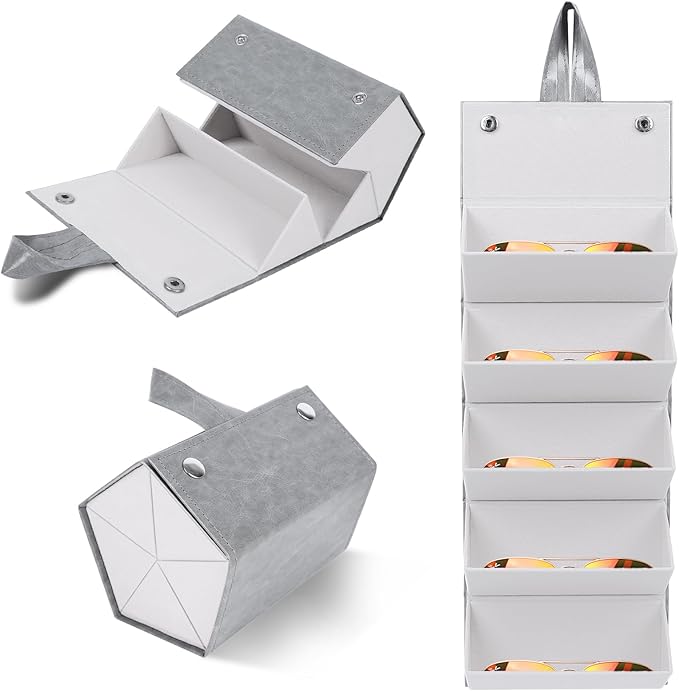 - 【Save More Space in Your Luggage】Multi sunglasses case organizer also brings you a dreamy experience during travel. It can be used as a travel sunglasses case and hung on a specific hook in the car, sunglasses organizer travel case rolls up into a pentagon-shaped box that fits neatly into suitcases, purses, totes, and backpacks.