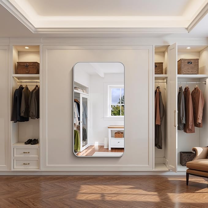 - Elegant Rounded Corners & Premium Safety: Featuring a sleek silver metal frame with softly contoured rounded corners. This sophisticated design combines modern elegance with enhanced safety, eliminating sharp edges while adding a luxe minimalist finish. The rich black frame elevates any decor, creating a visually expansive effect that brightens spaces and amplifies the sense of openness.