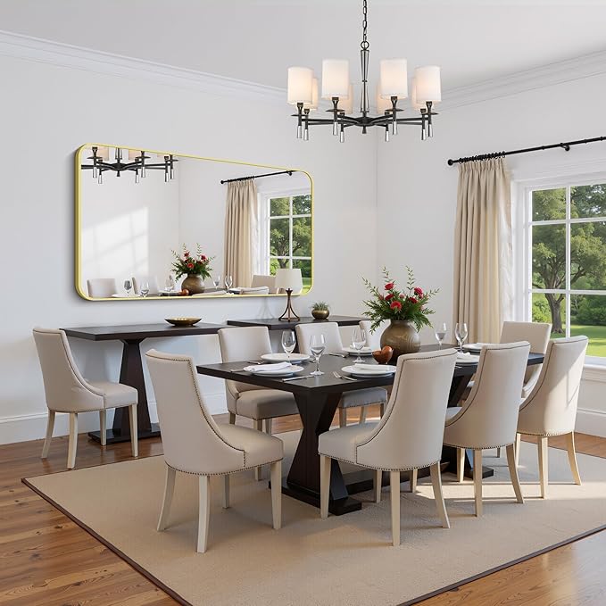 - Elegant Rounded Corners & Premium Safety: Featuring a sleek gold metal frame with softly contoured rounded corners. This sophisticated design combines modern elegance with enhanced safety, eliminating sharp edges while adding a luxe minimalist finish. The rich black frame elevates any decor, creating a visually expansive effect that brightens spaces and amplifies the sense of openness.