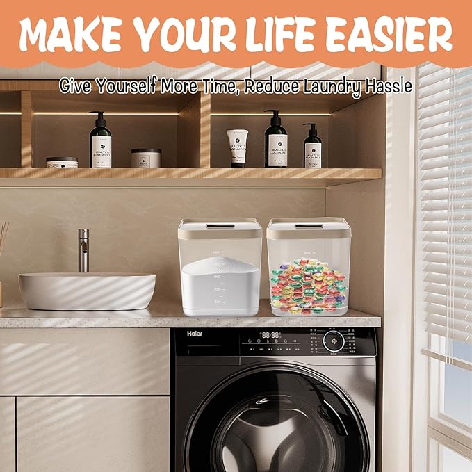 - Laundry Room Organization: The laundry pods container set includes 2 large laundry pods containers with slide lid designed to store detergent pods neatly and keep them dry. The large laundry pods container is a practical solution for organizing laundry rooms at home—also works for storing laundry powder or dishwasher pods.