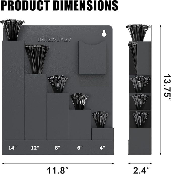 UNITEDPOWER Cable Tie Holder, Wall Mount Storage Rack Organizer for Workshop, Shed, Garage, Home, Fit Various Lengths Zip Tie
