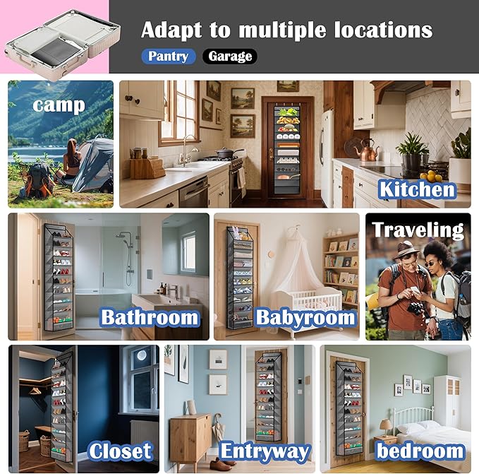 - 【 Effortless Installation & Flexibility】:No drilling or tools required! Instantly transform your door space by simply hanging these organizers. Ideal for those who want to keep their walls pristine. Lightweight and portable, they can be easily disassembled or repositioned based on your changing storage needs.