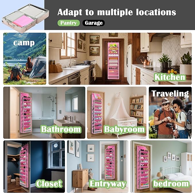 - 【 Effortless Installation & Flexibility】:No drilling or tools required! Instantly transform your door space by simply hanging these organizers. Ideal for those who want to keep their walls pristine. Lightweight and portable, they can be easily disassembled or repositioned based on your changing storage needs.