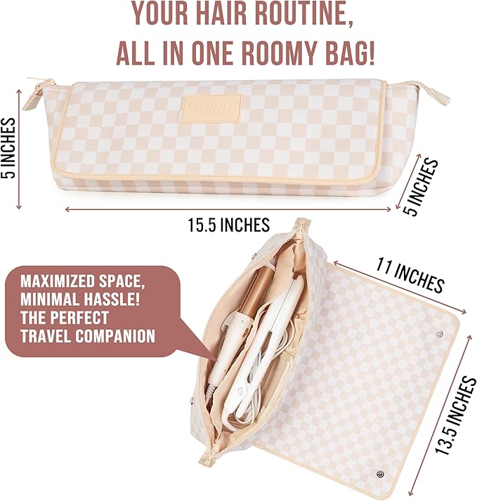 BAREFOOT CARIBOU Hair Tools Travel Bag and Heat Resistant Mat for Flat Irons, Straighteners, Curling Iron, and Haircare Accessories, 2-in-1 design, with Interior Pockets, Portable Organizer