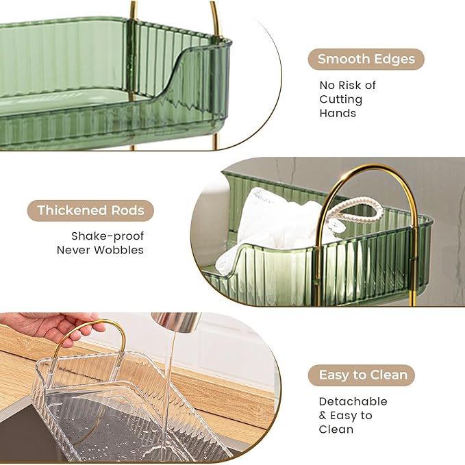 - 【LUXURY DESIGN】Premium acrylic with gold-metal brackets creates a Nordic-inspired aesthetic. The open design allows convenient one-hand access. Fits neatly on bathroom counters or vanity tables, with subtle retro accents that add an elegant touch.