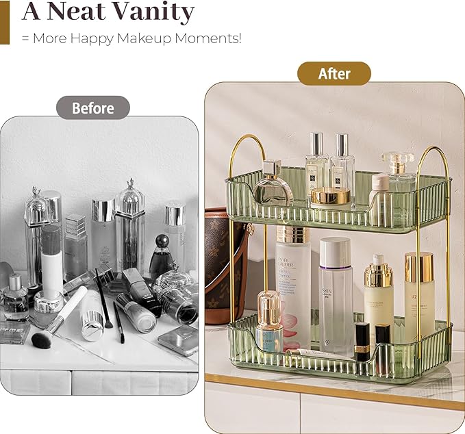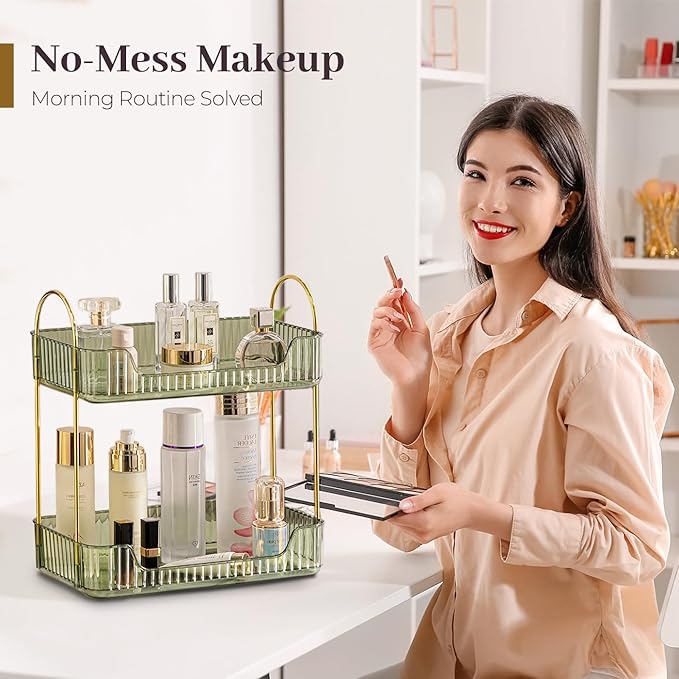 Aveniee Bathroom Counter Organizer, 2 Tier Perfume Skin Care Countertop Storage Shelf, Vanity Makeup Tray for Cosmetic Skincare Lotion,Green