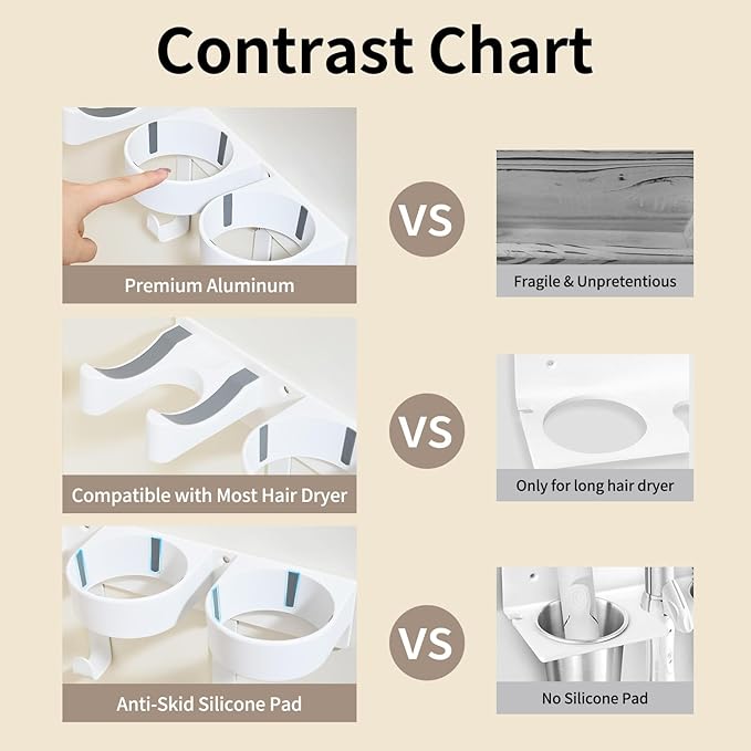 - Wall-Mounted Space-Saving - Built as a hair tool organizer wall mount, this wall-mounted aluminum alloy frame maximizes vertical space and reduces countertop clutter, working as a wall mounted hair tool organizer for bathrooms and vanities that need a clean, space-saving layout while keeping styling tools ready for everyday use