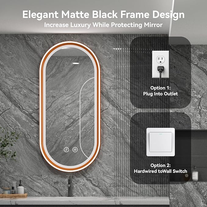 - [Premium Anti-Fog Function] Defog like magic! Our LED bathroom mirror clears steam in minutes and auto-shuts off after 1 hour—no more wiping or waiting. Enjoy a crystal-clear reflection every morning!