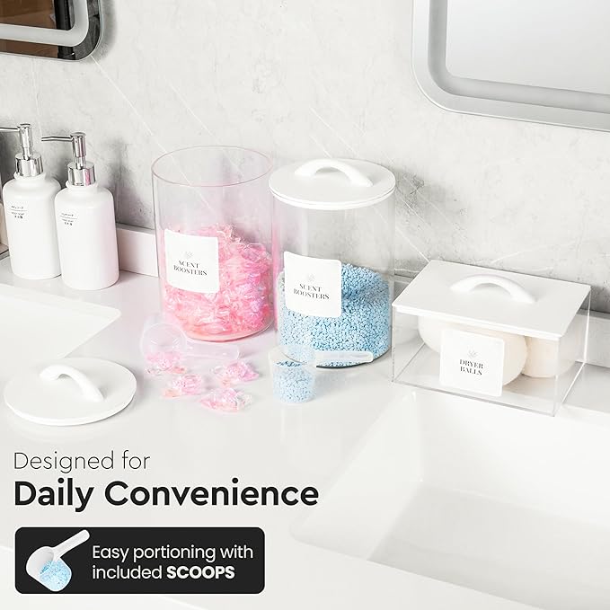 - SPACIOUS 3L CAPACITY: These storage jars with lids hold up to 3 liters (12.6 cups) each; offering generous space for detergent, pods, or scent boosters. A smart upgrade from standard 2L containers