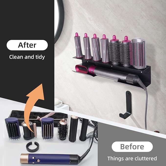 - ✅【Premium Build with Elegant Matte Finish】 The water-resistant finish of airwrap storage prevents rust, while the strong structure ensures your tools are always within reach and beautifully displayed.