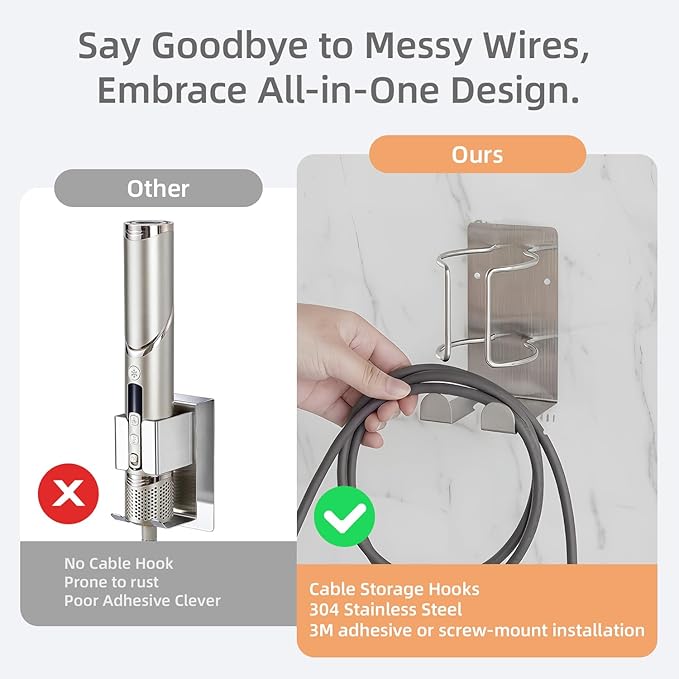 - 【Modern PlugPro Hair Holder Solution】Featuring an elegant brushed finish, this stylish Straightener Holder enhances any decor. The practical PlugPro Hair Holder maintains its sophisticated appearance while offering easy cleaning.