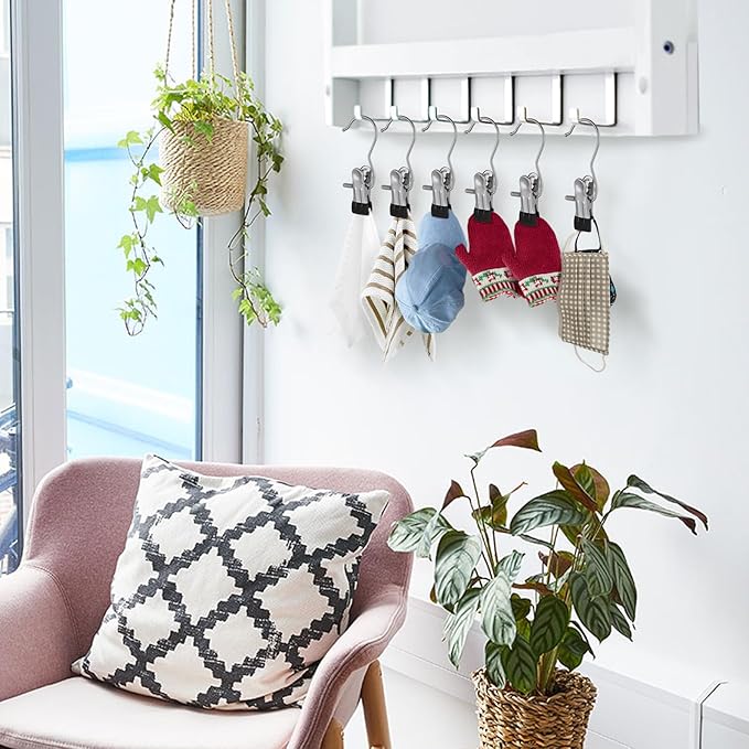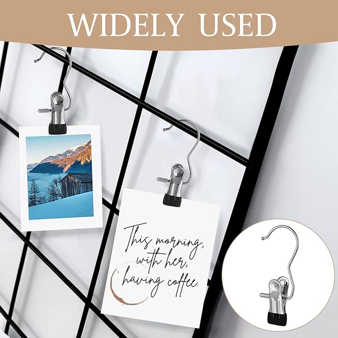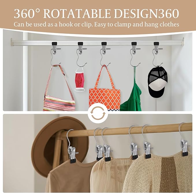 - 【Anti-Rust Clips and Space-Saving Design】Our clothespin hanger hooks are crafted from solid metal, ensuring exceptional durability and longevity. Unlike flimsy plastic or wooden hooks, our sturdy metal construction guarantees reliability. Plus, the innovative 360° rotating offers unbeatable convenience for storage, drying, and display.