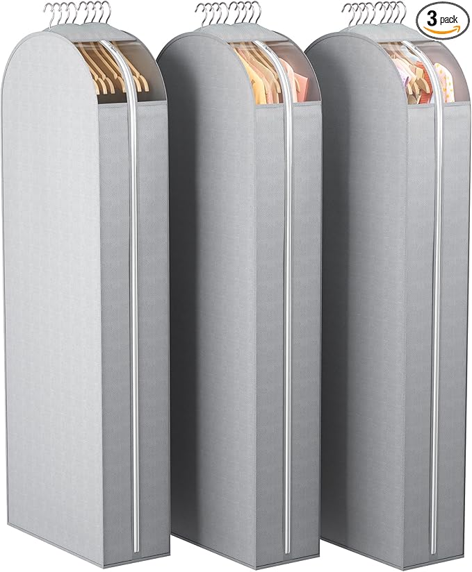 - 10” Gusseted & 3 Pack: Each garment bag can hold 10 suit or 8 winter coats without wrinkles. 60 inch length is perfect for storing long coats, furs,Jacket, holiday dresses and pants, etc
