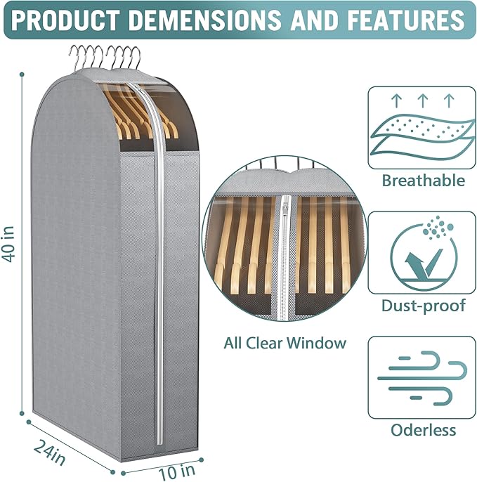 - Breathable Fabric with Clear Window: Liuoud garment bags made of no-woven fabric with clear widow, which is breathable,odorless and durable. The clear window that helps you see what's in each garment bag, you can easily find the clothes you look for