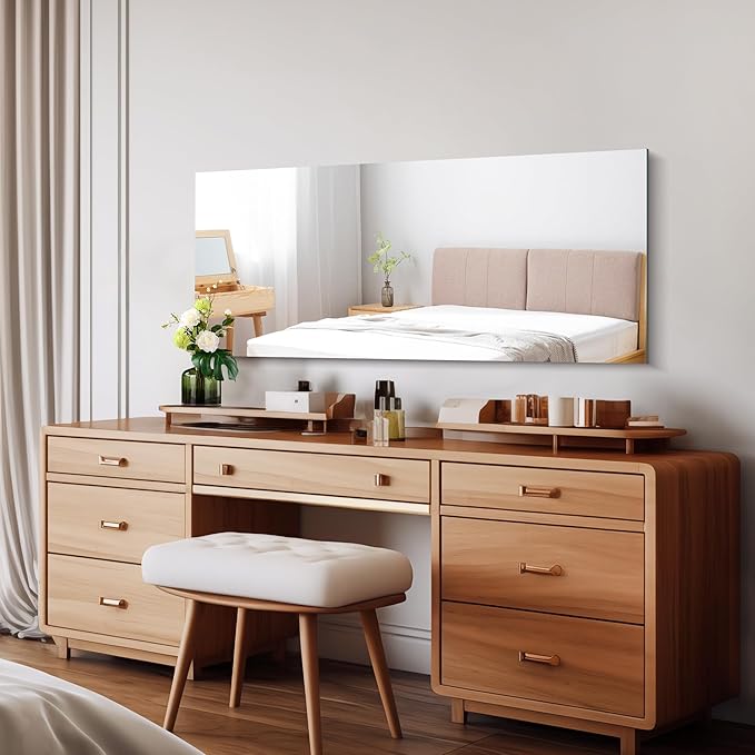 - Effortless Installation: Say goodbye to complicated setups. With included wall-mounted hardware, our frameless large mirror can be securely and effortlessly installed in just a few minutes. Whether you prefer a vertical or horizontal orientation, our mirror adapts seamlessly to your needs. Save time and start enjoying your mirror sooner with easy and quick installation.