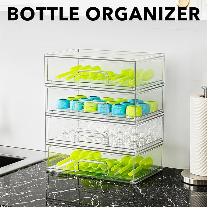 SpaceAid Bottle Storage Organizer Baby - Acrylic Bottles Station Organizer Container, Stackable Clear Drawers for Countertop, Vanity, Bathroom, Cabinet, Pantry Organization, 4 Pack, 4L, 13.7"H