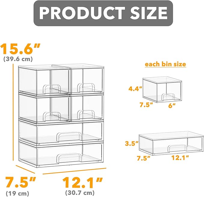 SpaceAid Bottle Storage Organizer Baby - Acrylic Bottles Station Organizer Container, Stackable Clear Drawers for Countertop, Vanity, Bathroom, Cabinet, Pantry Organization, 6 Pack, 4S2L, 15.6"H