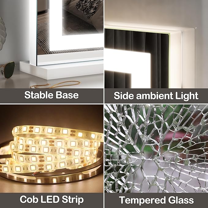 - 💌【Safety Tempered Glass - Shatter-Resistant Design】Features tempered glass mirror with enhanced impact resistance. Shatter-resistant coating prevents dangerous glass fragmentation (safer for homes with kids/pets). our vanity mirror is designed to withstand daily use ,Quality guaranteed and longer Lifespan。If for any reason you don’t satisfy, just contact us and We will solve it for you, 24 hours online!