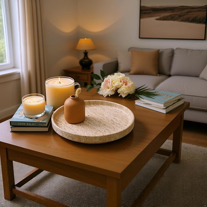 - Premium Natural Travertine – Uniquely Beautiful & Timeless Crafted from 100% authentic beige travertine stone, each tray reveals natural pores, textures, and earthy tones that highlight the essence of Wabi-sabi beauty — simple, rustic, and refined. No two trays are ever alike