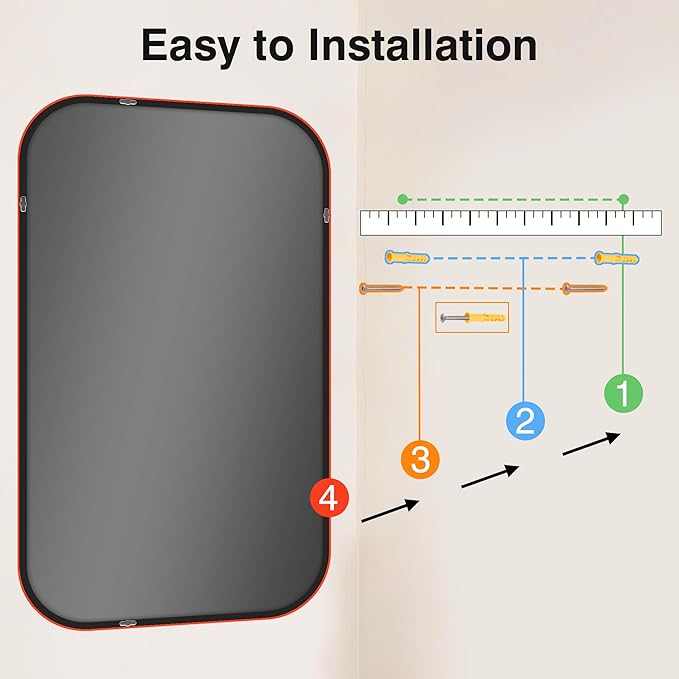 - Dual Mounting Flexibility: FGU Large Bathroom Mirror's 4 pre-drilled holes support vertical or horizontal wall mounting for bathroom sinks, hallways, and bedrooms with effortless flexibility.