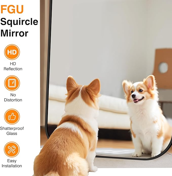 - Shatterproof Safety Glass: FGU Large Vanity Mirror not only features rounded corners but also shatterproof glass to minimize injury risks from impacts or accidental drops