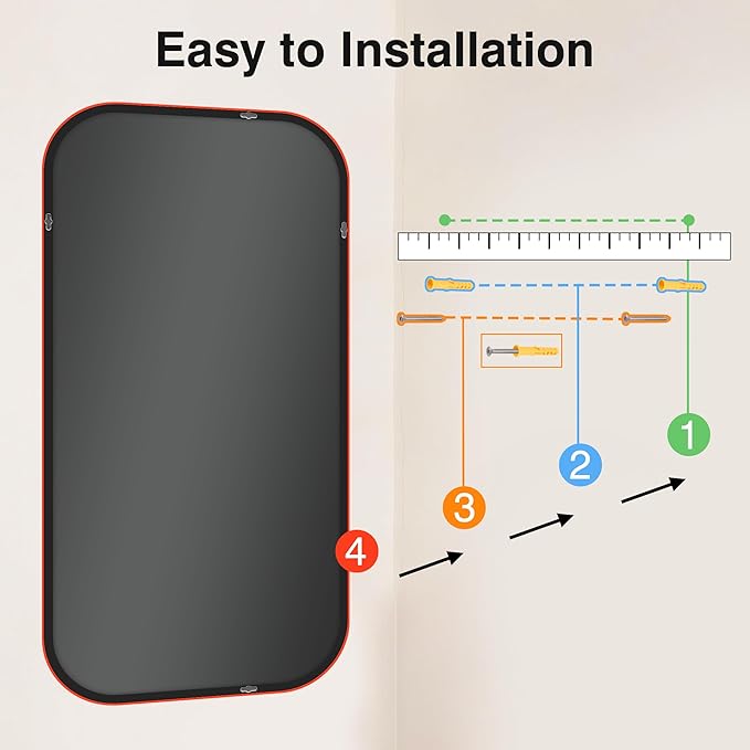 - Dual Mounting Flexibility: FGU Large Bathroom Mirror's 4 pre-drilled holes support vertical or horizontal wall mounting for bathroom sinks, hallways, and bedrooms with effortless flexibility.