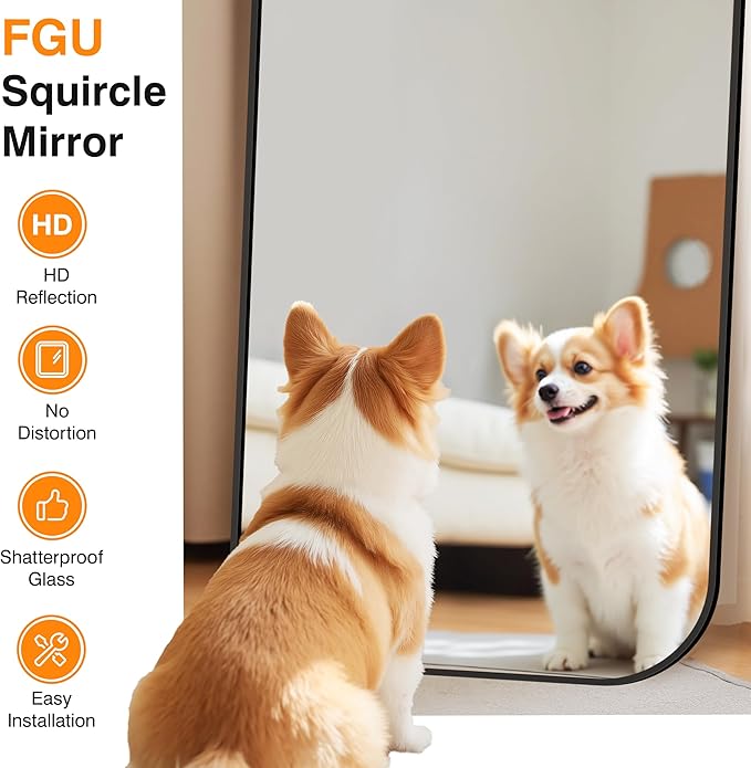 - Shatterproof Safety Glass: FGU Large Vanity Mirror not only features rounded corners but also shatterproof glass to minimize injury risks from impacts or accidental drops