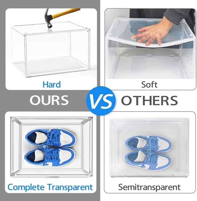 - Organize Your Collection: These Shoe Boxes Crates Clear are designed for sneakerheads and collectors who want to showcase their footwear in a neat and orderly manner. The stackable, transparent boxes are perfect for displaying your shoes or clothes while saving space and maintaining a tidy appearance