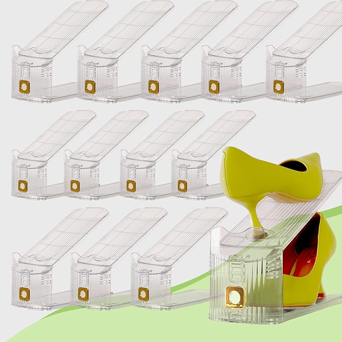 12 Pack Shoe Slots Organizer, Shoe Stackers Organizer for Closet Adjustable Shoe Holder Space Saver 50% Shoes Racks for Closet Organization