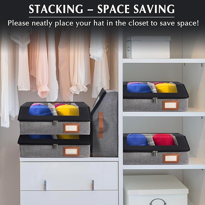 - Clear window for easy viewing: Instantly identify any cap through the durable, clear PVC lid on this baseball hat organizer. This hat organizer for baseball caps offers scratch-resistant visibility while being stain-resistant and easy to clean, making it a premium hat holder for your collection