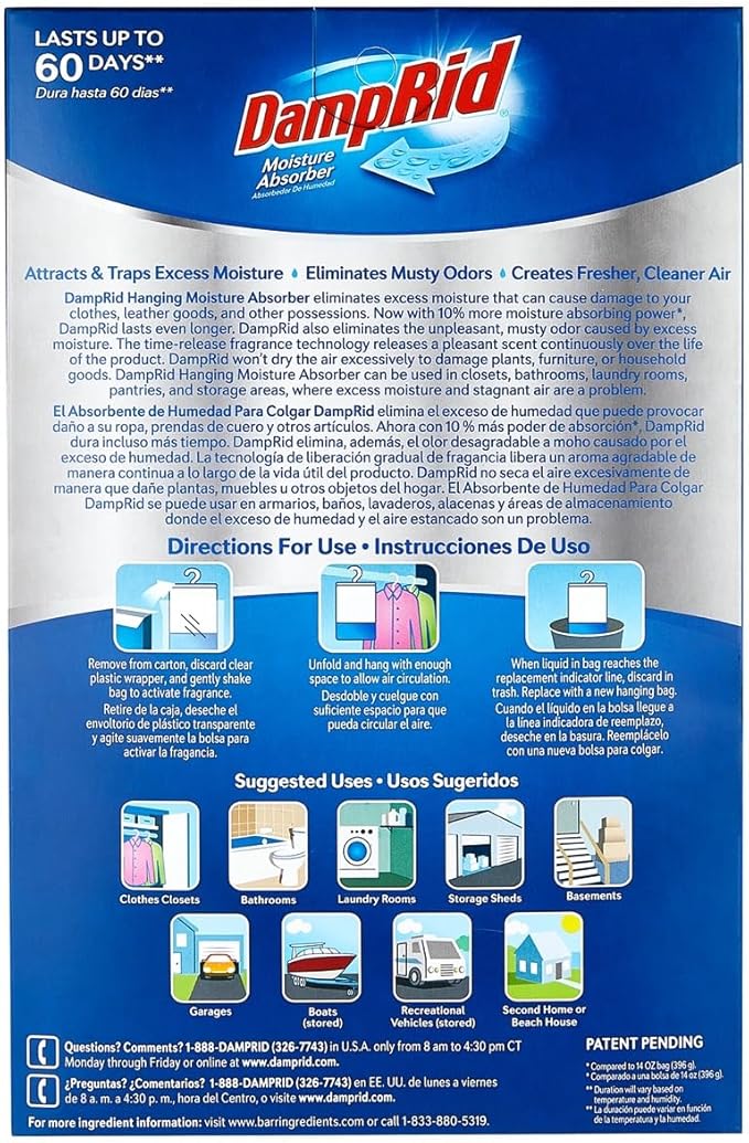 - DEAL FOR CLOSETS: Damp Rid Hanging Moisture Absorbers make a great closet or dorm room dehumidifier, eliminating musty odors and excess moisture that can cause damp-feeling fabrics and damage to your clothes and leather goods.