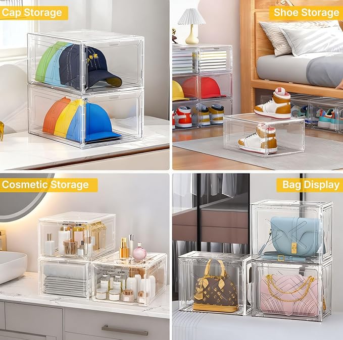 - ✔Stackable Shoe Organizer with Stable Structure – Designed for secure vertical and horizontal stacking, this shoe storage box helps maximize space in closets, dorms, and multifunctional storage areas without sliding or collapsing.