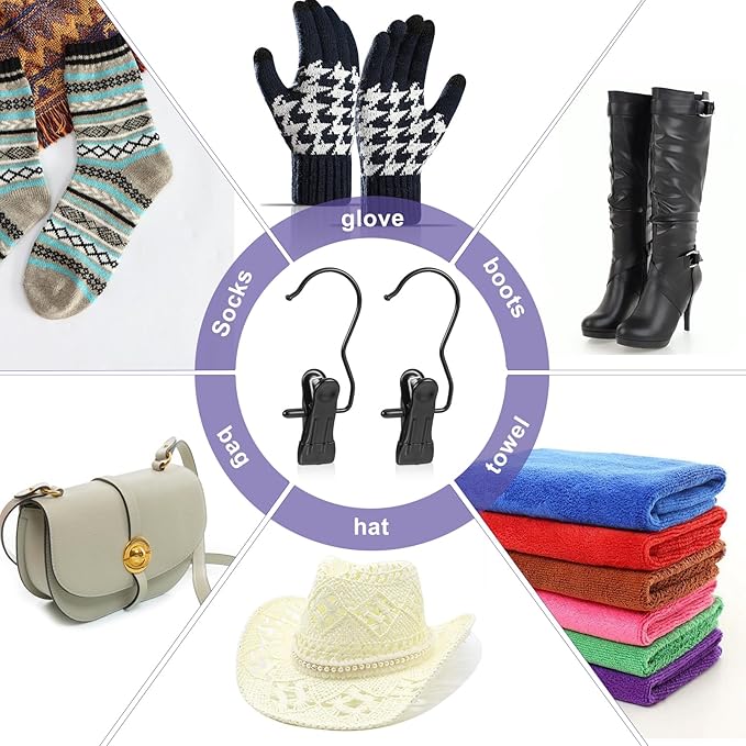 60 Pcs Boot Hangers Clips, Heavy Duty Laundry Hooks and Clothes Pins for Closet Organizer, Portable Space Saving for Travel, Hanging Pants, Jeans, Tall Boots, Towels, Socks, Hats, Black