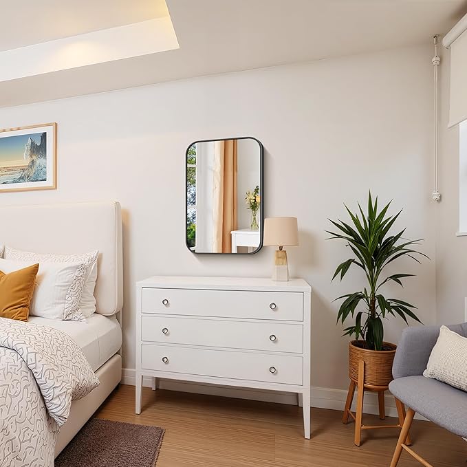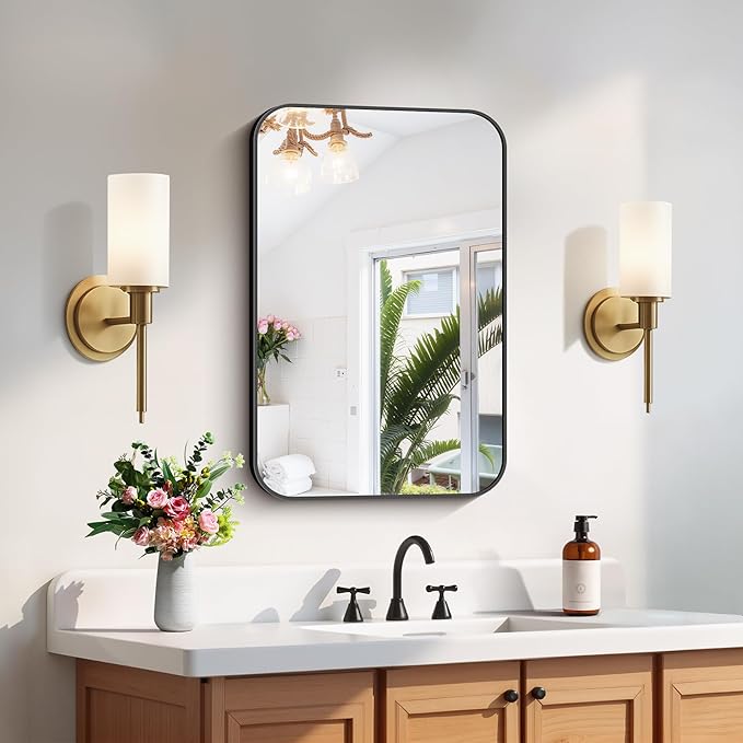 FORBATH Black Bathroom Mirror for Over Sink, Wall Mirror 16x24 Inch with Metal Frame, Rounded Corners for Bathroom, Bedroom, Entryway Décor