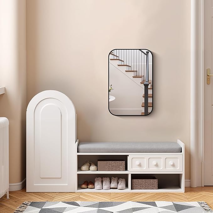 - Elegant Rounded Corners & Premium Safety: Featuring a sleek black metal frame with softly contoured rounded corners. This sophisticated design combines modern elegance with enhanced safety, eliminating sharp edges while adding a luxe minimalist finish. The rich black frame elevates any decor, creating a visually expansive effect that brightens spaces and amplifies the sense of openness.