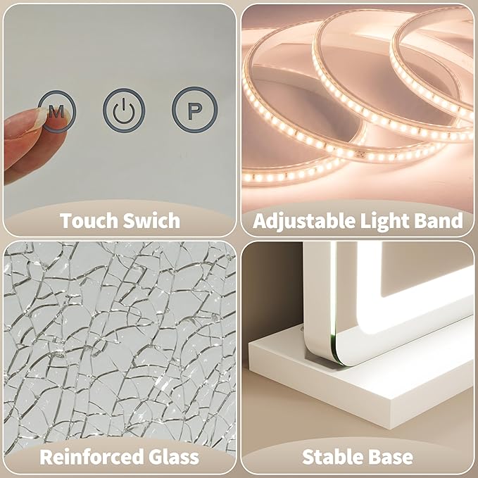 - 💌【Safety Tempered Glass - Shatter-Resistant Design】Features tempered glass mirror with enhanced impact resistance. Shatter-resistant coating prevents dangerous glass fragmentation (safer for homes with kids/pets). our vanity mirror is designed to withstand daily use ,Quality guaranteed and longer Lifespan。If for any reason you don’t satisfy, just contact us and We will solve it for you, 24 hours online!