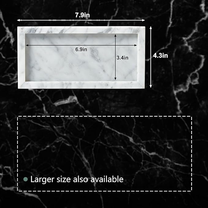 - Sleek & Compact Profile: Designed with a modern aesthetic, our small tray features a sleek, low-profile shape measuring a perfect 7.9” L x 4.3” W. This space-saving proportion is ideal for limited counter space, such as small vanity corners, nightstands, office desks, or as a dedicated holder for your most prized possessions, blending seamlessly into your decor.