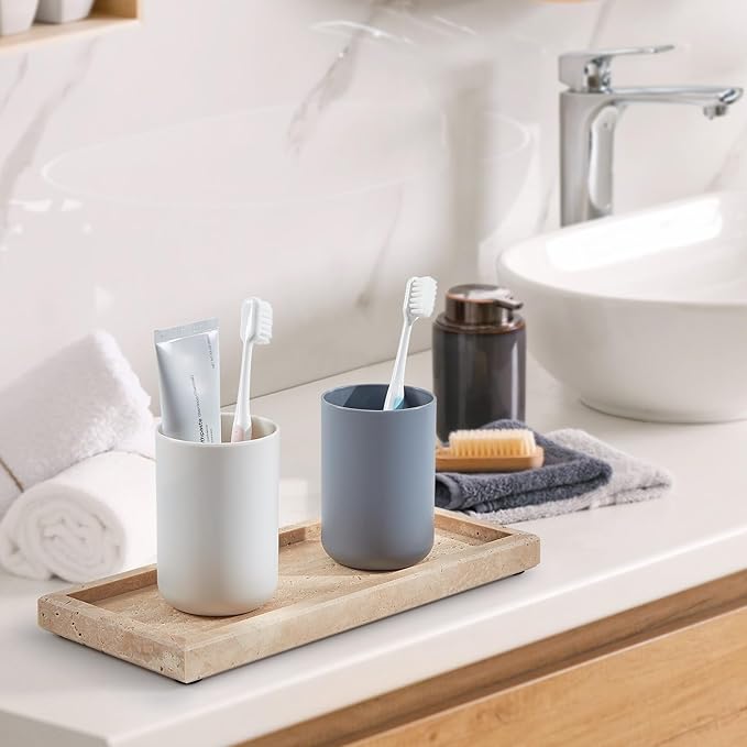 Natural Small Travertine Tray for Bathroom Vanity and Kitchen Sink, Stone Countertop Organizer for Soap Dispenser, Jewelry, Perfume, Candle, Ring, Home Decor, Non-Resin Non-Ceramic