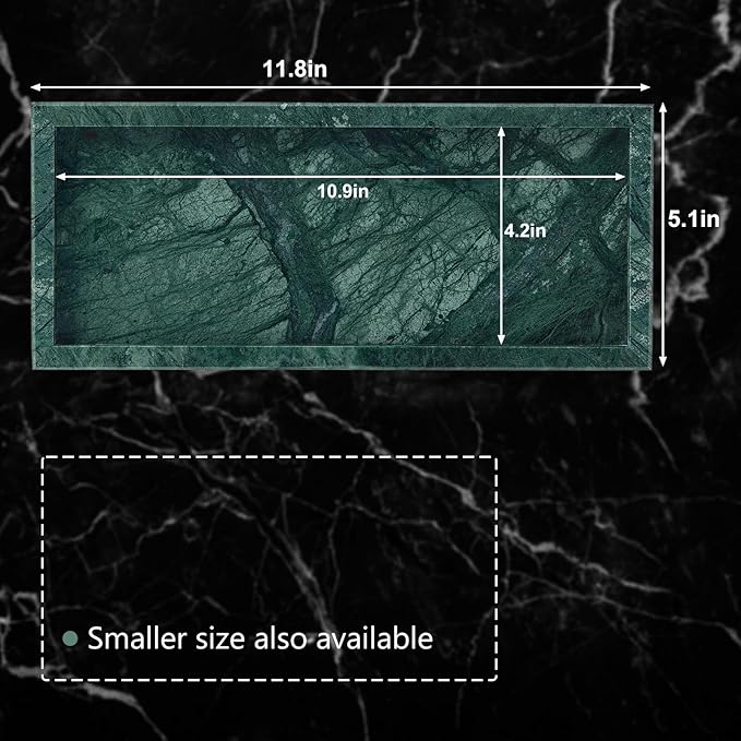 - Sleek & Sophisticated Profile: Designed with a modern aesthetic, our tray features a sleek, low-profile shape measuring 11.8” L x 5.1” W. This elegant proportion is perfectly suited for narrow countertops, vanity shelves, or dressers, providing a spacious surface for organization without occupying excessive space, blending seamlessly into your decor.