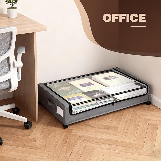 - 【Label & Transparent Lid Design】Featuring a clear top and label cards, this underbed storage containers allows for quick identification of contents without needing to open it, preventing misplacement and saving time searching for items. The double-zipper design, combined with high-quality materials, effectively protects against moisture, oil, dust, and dirt, keeping your belongings clean and organized.