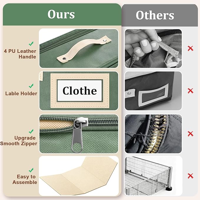 - 【Waterproof Upgraded Fabric & Leather Handle, Sturdy & Durable Design】Stronger than standard storage cabinets! This high-quality 80G new non-woven fabric waterproof material features strong tear resistance and durability. Meanwhile, our lockers are equipped with leather handles and a double-seam design. Durable and sturdy, it meets all your heavyweight storage needs.
