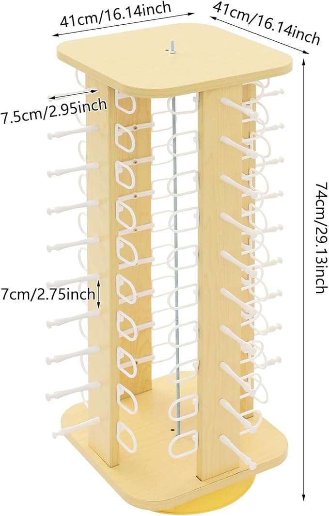 - 【Large Capacity】With an overall height of 29.13in and 4 sides that can hold up to 40 pairs of eyeglasses, it offers a large enough capacity to display a variety of eyeglasses