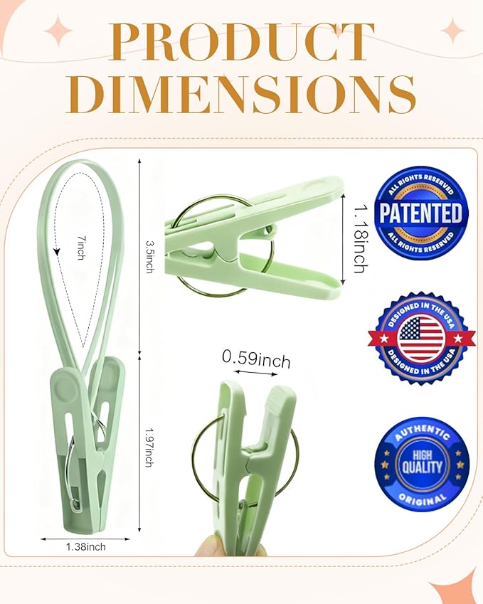 - ✅Perfect Size for Everything:Each clip measures 1.97" x 1.38" with a 7.5" rope. Fits all hangers, racks, and drying lines easily.