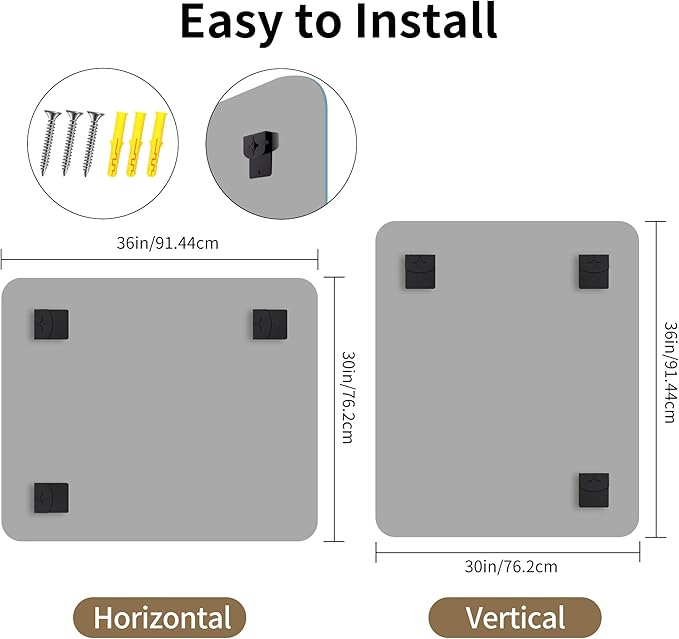 - EFFORTLESS INSTALLATION: Say goodbye to complicated setups. With included wall-mounted hardware, our frameless rectangular mirror can be securely and effortlessly installed in just a few minutes. With its versatile design, our unframed 30x36 mirror adapts seamlessly to your needs. Save time and start enjoying your mirror sooner with easy and quick installation.
